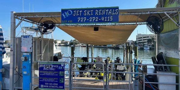 Ready to start your Clearwater jet ski adventure tour? To find us just look for Jet Ski Rentals! You’ll find us at Slip 25 where the causeway meets the Gulf in the Clearwater Marina, just across from Crabby’s. Look for slip 25 and our sign: H20 Jet Ski Rentals.